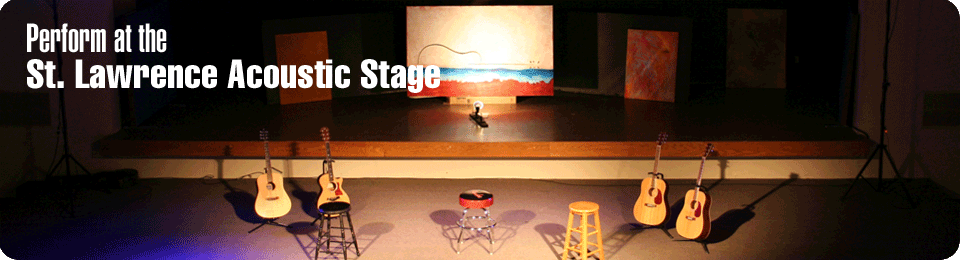 We present both emerging artists and touring professional musicians. Emerging artists perform in an annual showcase that we call Intimate Acoustics and will be considered on the basis of their electronic or other submissions (please send to info@st-lawrencestage.com). We are interested primarily in acoustic performances of original songs. Decisions on emerging artists are usually made one to two months in advance of our emerging artist lineups and will involve up to six artists and/or bands. Due to the high volume of submissions, we are able to contact only successful applicants.